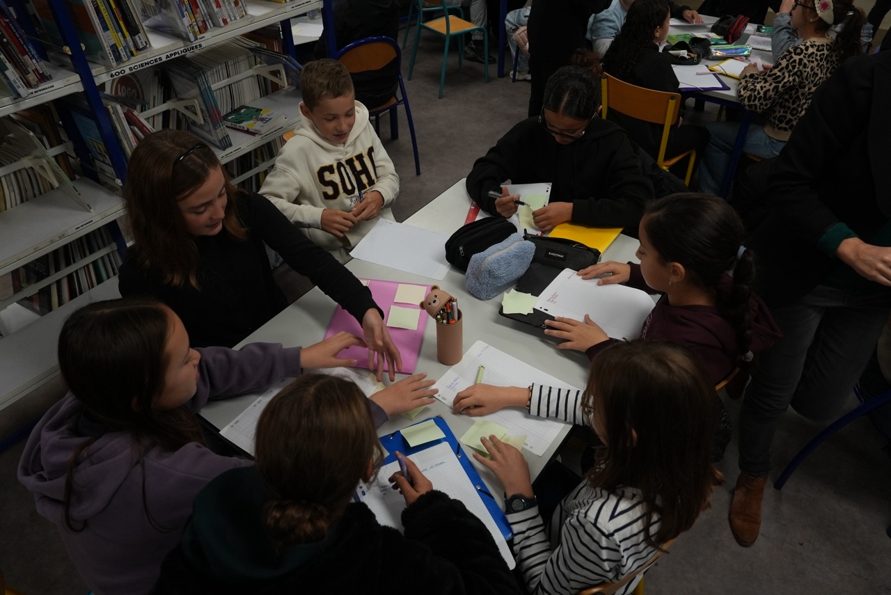 Après avoir répondu aux nombreuses questions des élèves sur son travail et ses romans, Anne leur a dévoilé quelques conseils dans le cadre d’un atelier d’écriture. Parce qu’on dit souvent qu’un bon roman, une bonne histoire, c’est un bon méchant, les élèves ont créé une créature effrayante et l’ont ensuite mise en situation pour écrire un début d’histoire efficace.