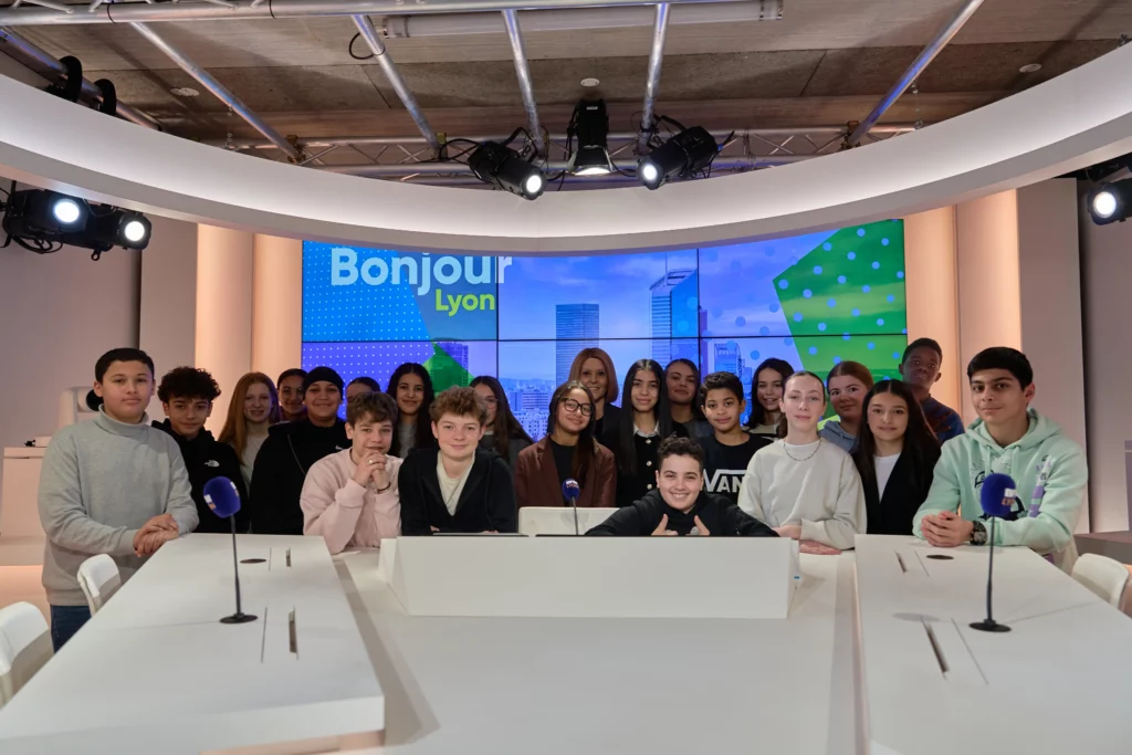 Dans le cadre de la Semaine de la presse, 20 élèves de 4°ont eu l’opportunité de visiter les locaux de BFM Lyon. Ils étaient accompagnés d’Élodie POYADE, journaliste de l’émission #BonsoirLyon. Cette visite leur a permis de découvrir l’envers du décor d’une chaîne d’information. Élodie Poyade a pris le temps de répondre à leurs nombreuses questions. Elle a partagé son expérience et expliqué les exigences du métier de journaliste.