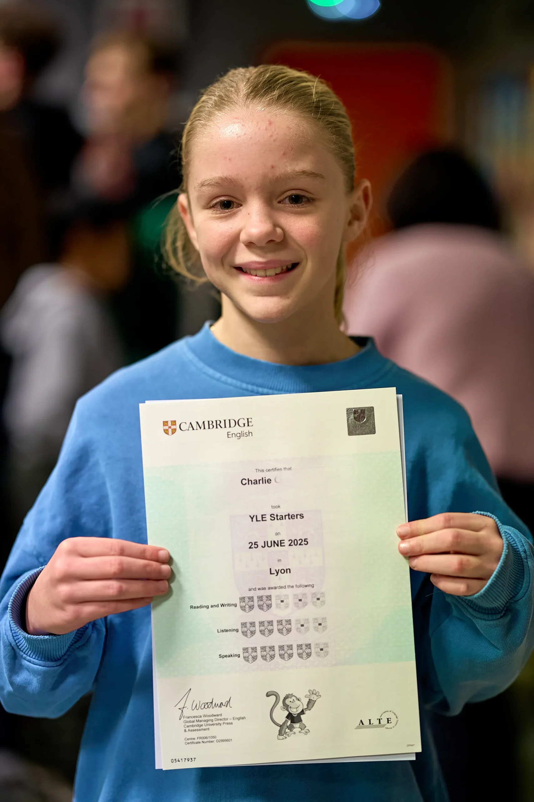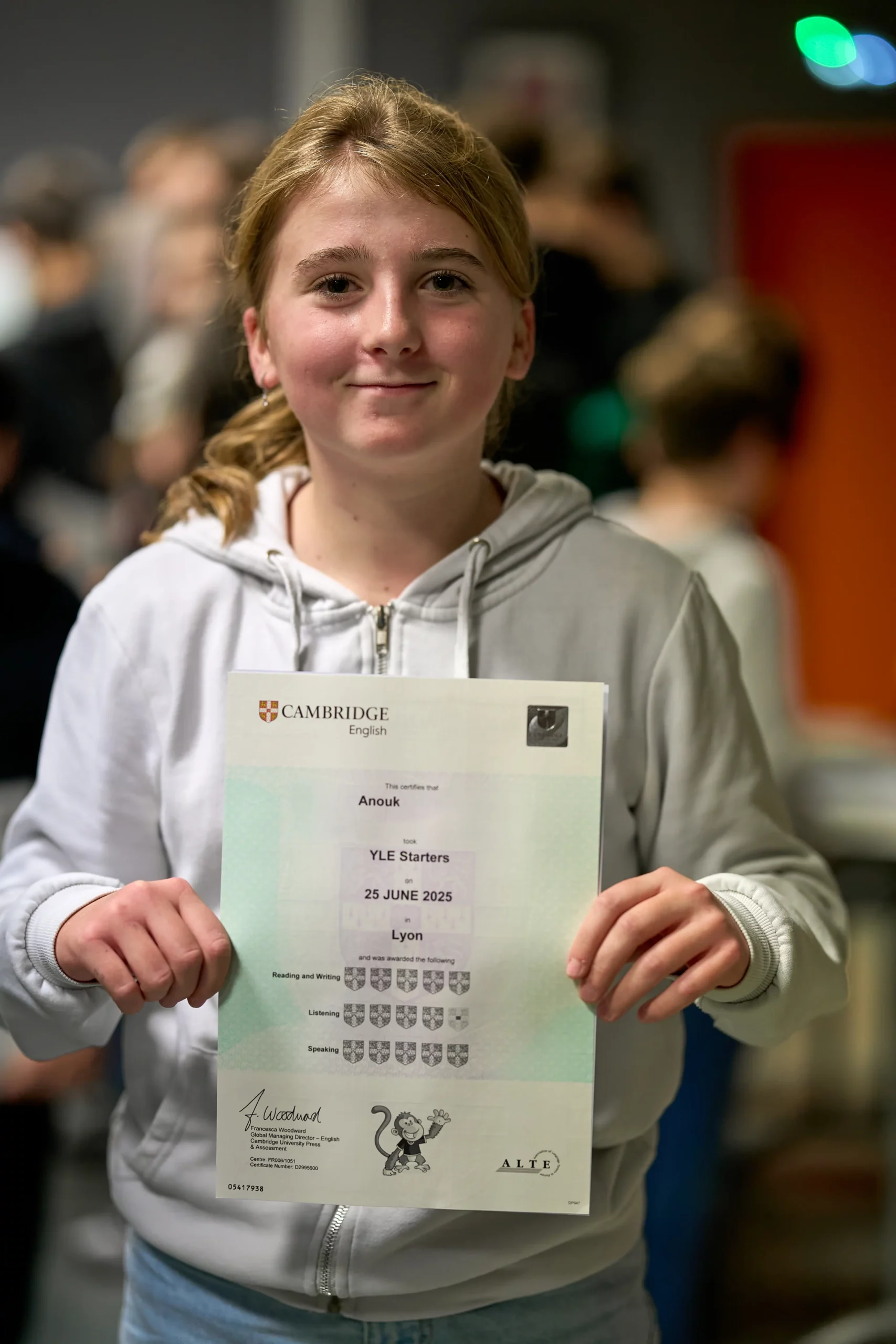 Ces certifications valident le niveau d’anglais de nos élèves selon les standards internationaux de Cambridge. Elles récompensent plusieurs années d’efforts, de sérieux et d’engagement, en classe comme à la maison.